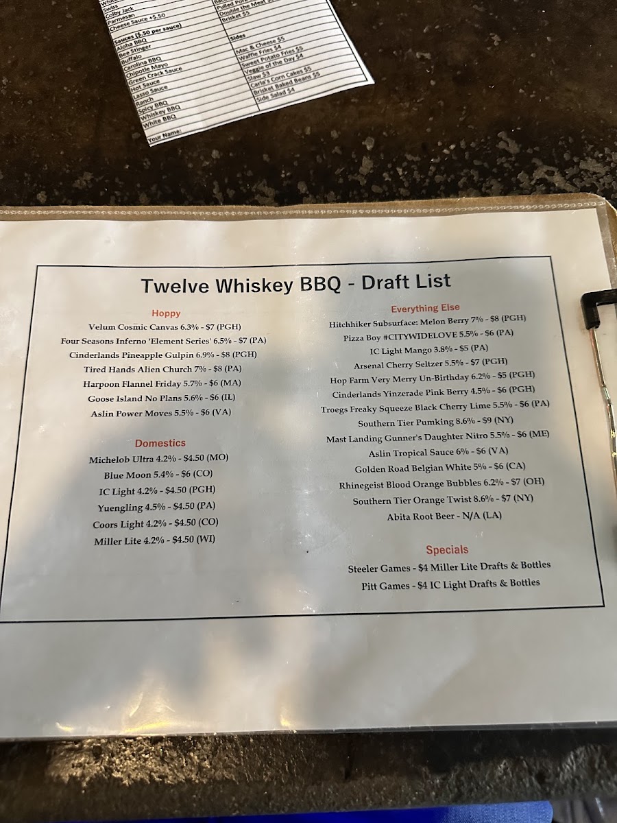 Twelve Whiskey Barbecue, located in the heart of Pittsburgh, offers a tantalizing menu that marries smoky flavors and Southern hospitality. The vibrant atmosphere invites guests to savor a wide range of dishes, with signature highlights like the Brisket Burrito and Sweet Heat Chicken Sando stealing the show. For those who crave comfort, the brisket poutine enriched with rich gravy is a must-try.